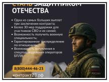 Решение принято по поручению губернатора Вениамина Кондратьева. Заключившие контракт с Минобороны России от Краснодарского края продолжат единовременно получать 3 млн рублей. Условия заключения контракта в Краснодарском крае – одни из лучших в стране По всем вопросам поступления на военную службу от Краснодарского края ЕДИНЫЙ ОФИЦИАЛЬНЫЙ телефон: 8(800)444-46-23.
