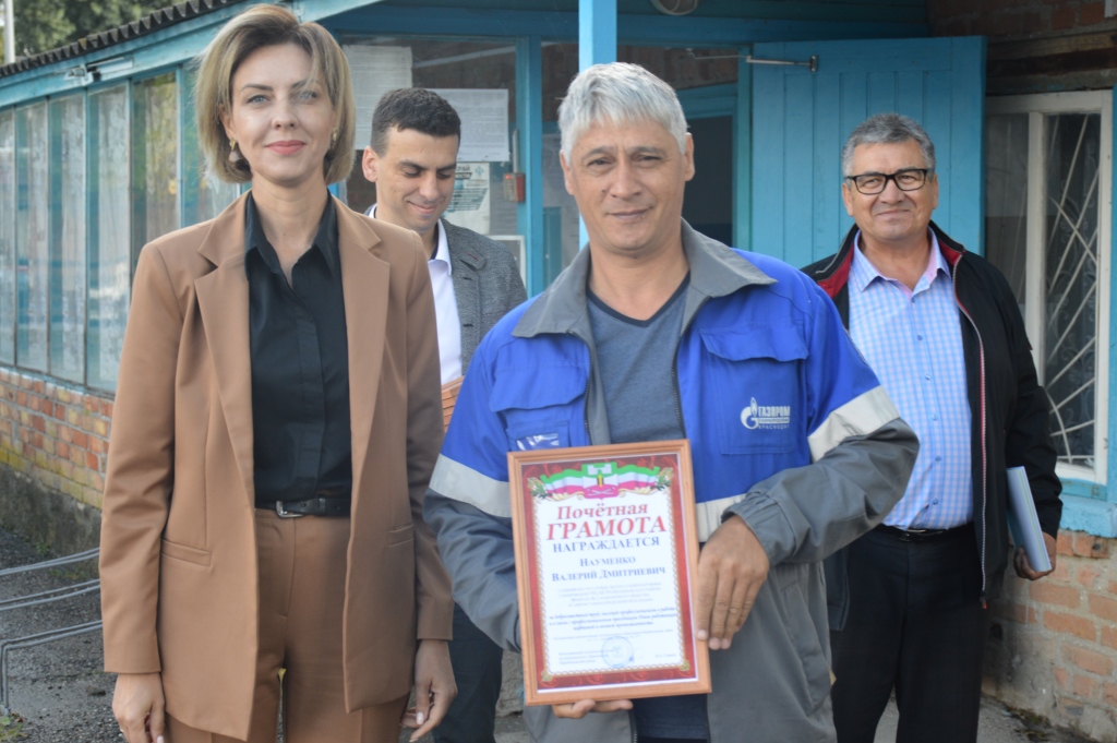 В преддверии Дня работников нефтяной и газовой промышленности исполняющий полномочия главы района Виктория Савина и исполняющий обязанности заместителя главы района Тимофей Шилин поздравили с профессиональным праздником работников Филиала № 2 акционерного общества «Газпром газораспределение Краснодар». За добросовестный труд, высокий профессионализм в работе и в связи с профессиональным праздником Виктория Александровна вручила работникам Почётные грамоты администрации района и Благодарности главы муниципалитета.
