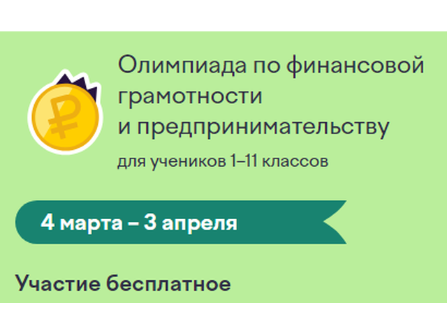Всероссийская онлайн-олимпиада по финансовой грамотности и предпринимательству для учеников 1–11 классов
