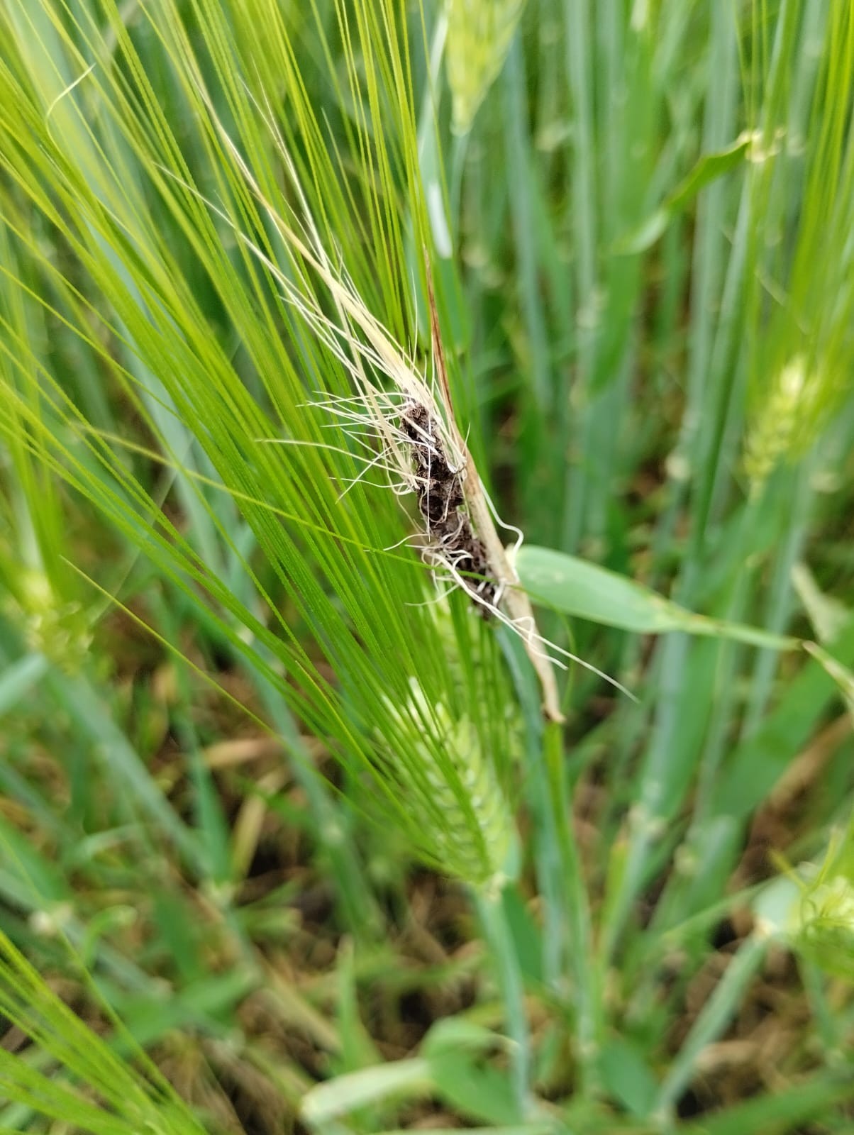 Мониторинг посевов озимого ячменя показывает единичное проявление пыльной головни. Заболевание передается зараженными семенами. Поражение происходит в поле во время цветения, споры гриба проникают в зародыш семени. Инфекция сохраняется внутри зародыша мицелием до посева и в течение 3-х лет не теряет своего патогенного потенциала.