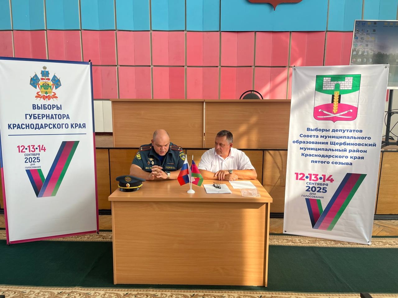 В целях выполнения задач по обеспечению безопасности на избирательных участках Щербиновского района при проведении выборов Губернатора Краснодарского края и муниципальных выборов, назначенных на 14 сентября 2025 года, голосование на которых будет проводиться в течение нескольких дней подряд 12, 13 и 14 сентября 2025 года, состоялась тренировка по отработке алгоритма действий при возникновении чрезвычайных и нештатных ситуаций для членов участковых избирательных комиссий.