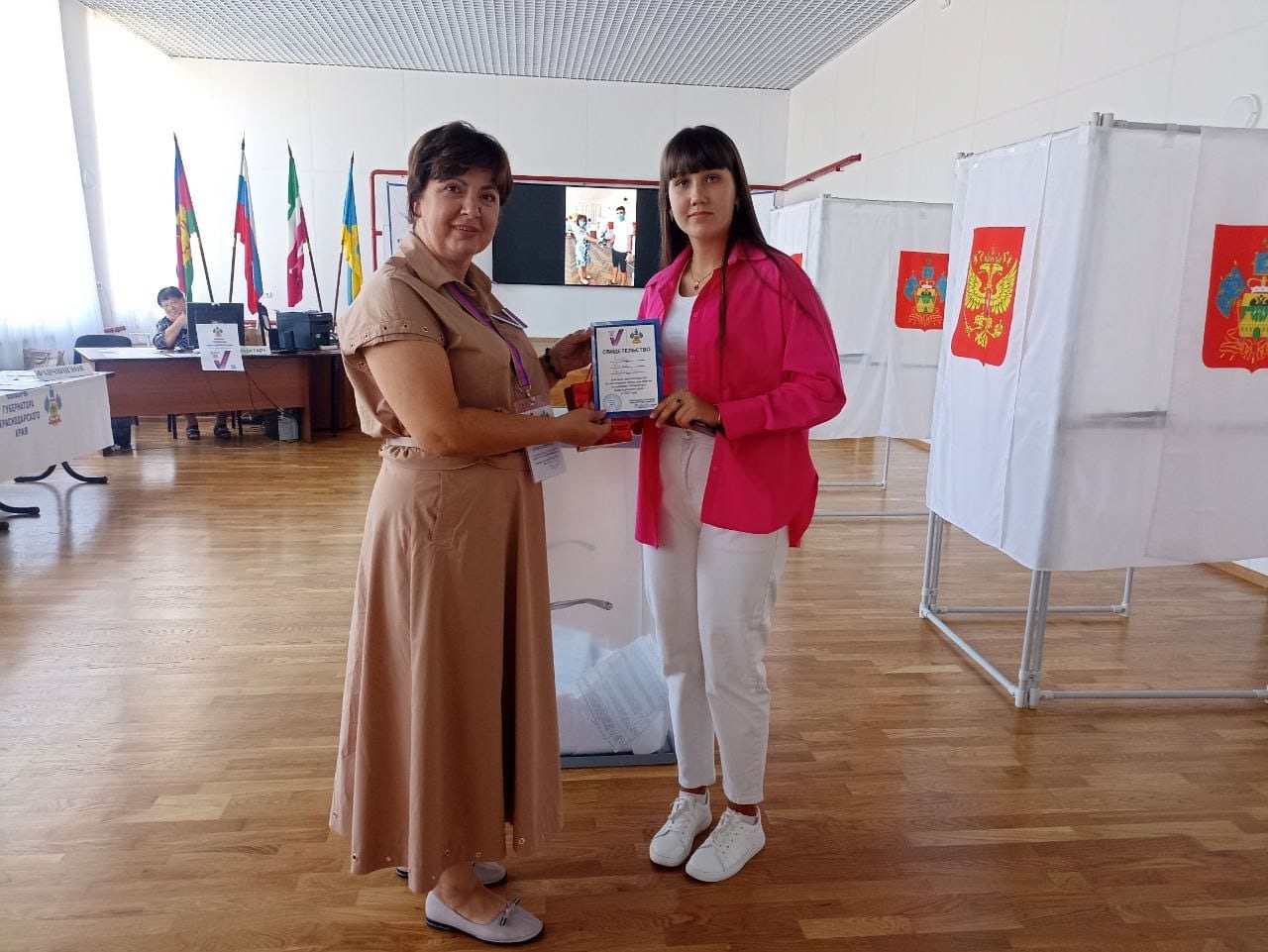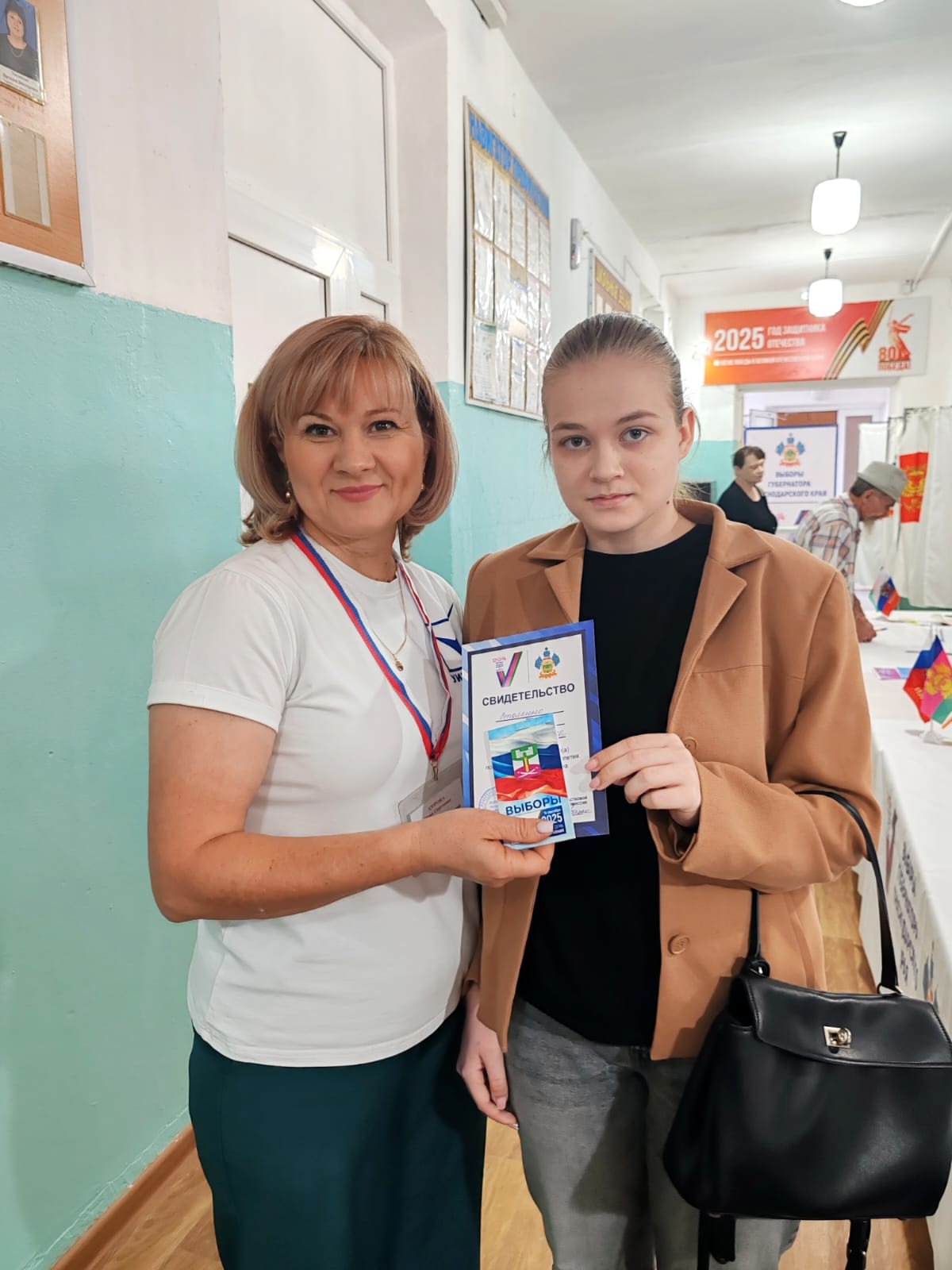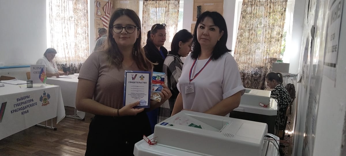 Впервые голосующим на избирательном участке вручается уникальное свидетельство о том, что по достижении возраста совершеннолетия они приняли участие в главных выборах Кубани - выборах Губернатора Краснодарского края.