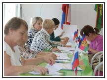 На избирательном участке № 57-06 царит праздничная атмосфера.