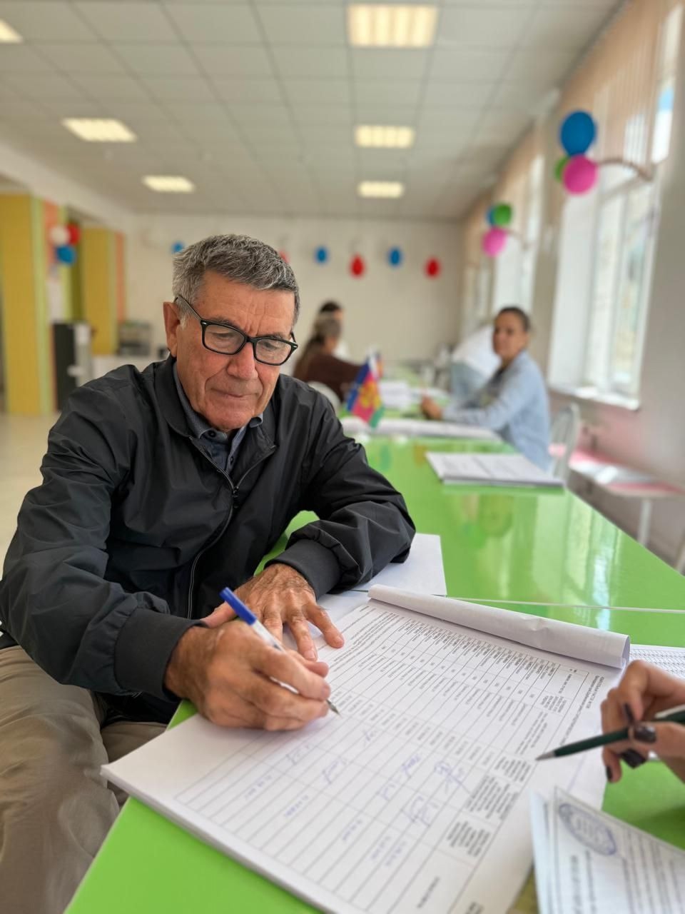 Герой труда Кубани, председатель СПК ( колхоз) «Знамя Ленина» Юрий Хараман вместе с супругой принял участие сегодня в выборах
