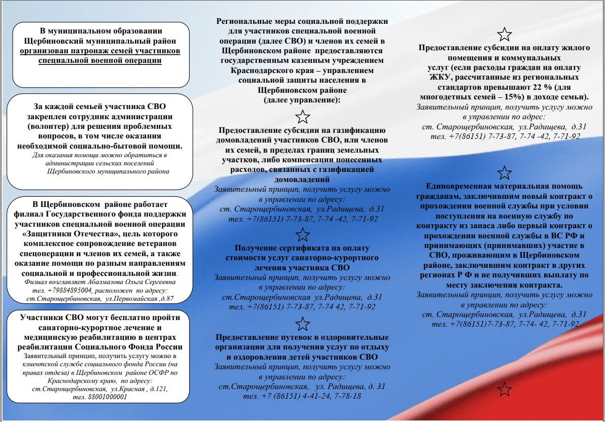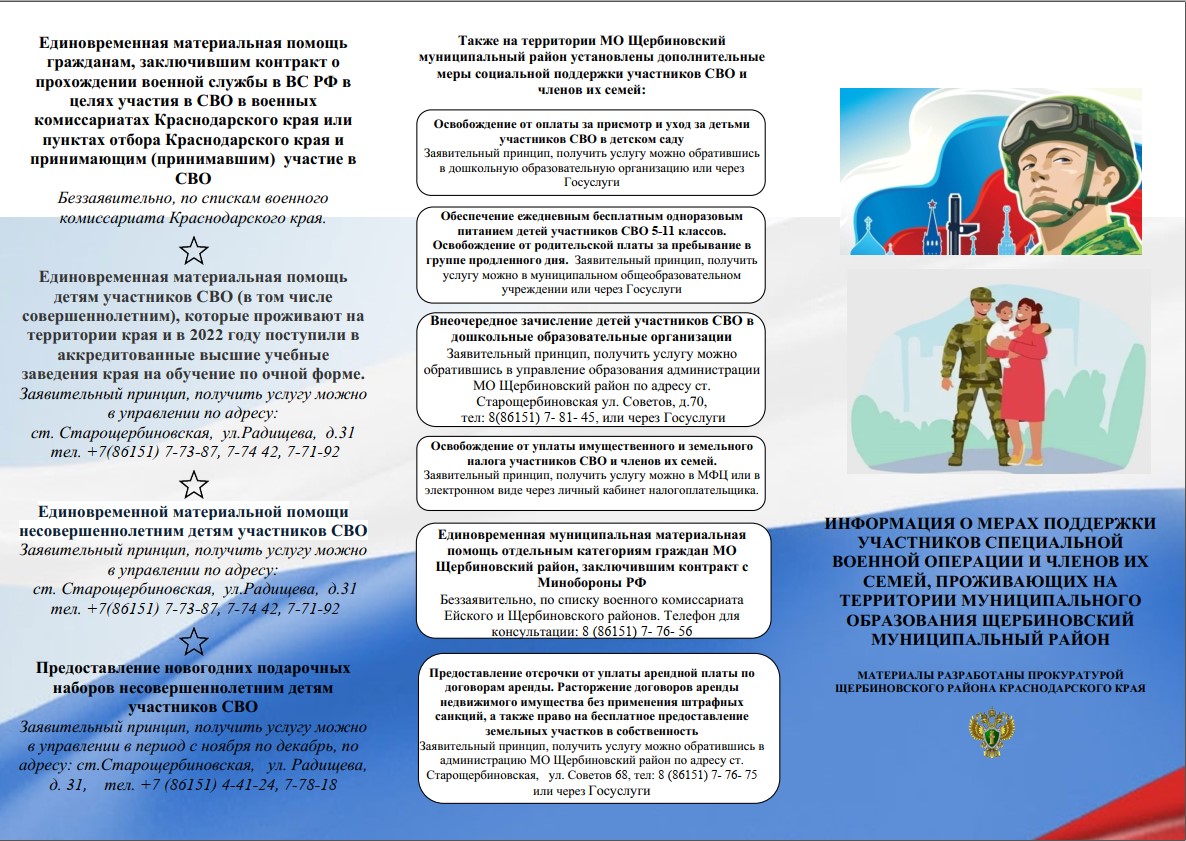Прокуратура Щербиновского района информирует о мерах поддержки участников специальной военной операции и членов их семей, проживающих на территории Щербиновского района