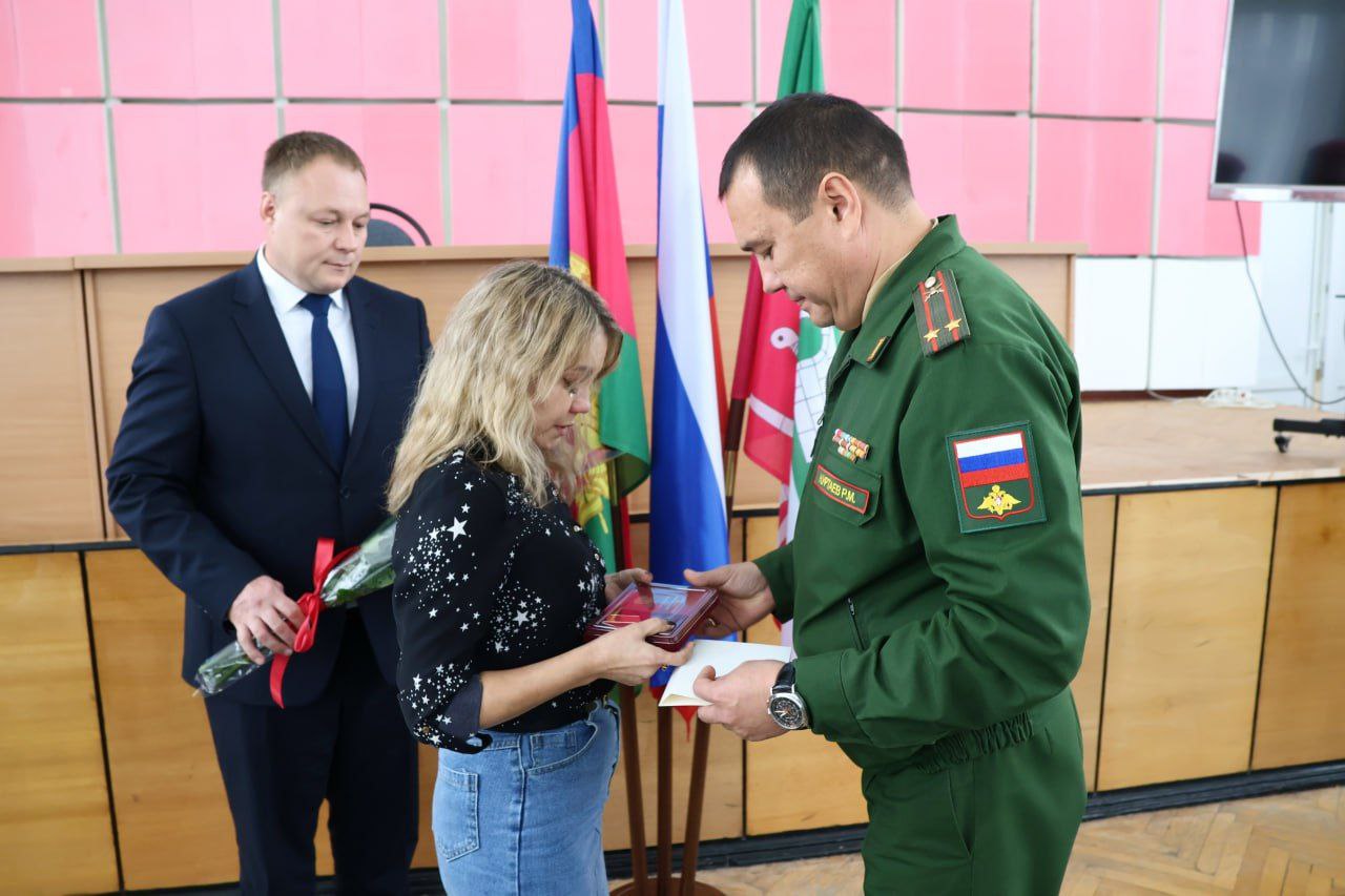 Жители Щербиновского района, выполняя боевые задачи в ходе специальной военной операции, отдали свои жизни за правду, защищая мирных жителей, сражаясь за свободу. За мужество, отвагу и самоотверженность, проявленные при исполнении воинского долга, наши земляки награждены государственными наградами посмертно. Сегодня в администрации района руководитель муниципалитета Сергей Дормидонтов вместе с военным комиссаром Ейского и Щербиновского муниципальных районов подполковником Русланом Нуртаевым передали награды на вечное хранение родным бойцов. Указом Президента Российской Федерации «Орденом Мужества» награжден Гринюс Виктор Викторович. Государственную награду вручили вдове Героя – Светлане Эдуардовне. Указом Президента Российской Федерации «Орденом Мужества» награжден Самофалов Юрий Васильевич. Государственную награду передали вдове Юрия- Виктории Витальевне. Указом Президента Российской Федерации «Орденом Мужества» награжден Баграм Николай Викторович. Высокую награду передали матери бойца Алле Николаевне. Указом Президента Российской Федерации «Орденом Мужества» награжден Спирькин Николай Викторович. Государственную награду передали матери- Ольге Викторовне. Указом Президента Российской Федерации «Орденом Мужества» награжден Каркачев Геннадий Викторович. Государственную награду вручили сестре Героя – Татьяне Алексеевне. Подвиги земляков навсегда останутся в наших сердцах и в истории Щербиновского района. Вечная память Героям.