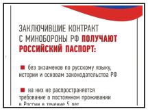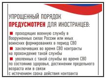 Гражданство РФ по упрощенной системе могут получить участники СВО Что для этого нужно: пройти военную службу в Вооруженных силах России или иных воинских формированиях в период СВО заключить контракт на прохождение такой службы с Минобороны России Упрощенный порядок – это получение гражданства без экзаменов по русскому языку, истории и основам законодательства РФ без требования о постоянном проживании в России в течение 5 лет Упрощенный порядок также распространяется на уволенных с военной службы во время СВО по состоянию здоровья, достижению предельного возраста или в связи с истечением срока действия контракта на членов семей таких иностранных граждан По всем вопросам поступления на военную службу от Краснодарского края - ЕДИНЫЙ ОФИЦИАЛЬНЫЙ телефон: 8(800)444-46-23. Все льготы и меры поддержки: контракт23.рф