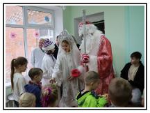 Наши волшебные персонажи водили с детьми хоровод, играли в игры, ну и, конечно же, поздравили детей новогодними подарками.
