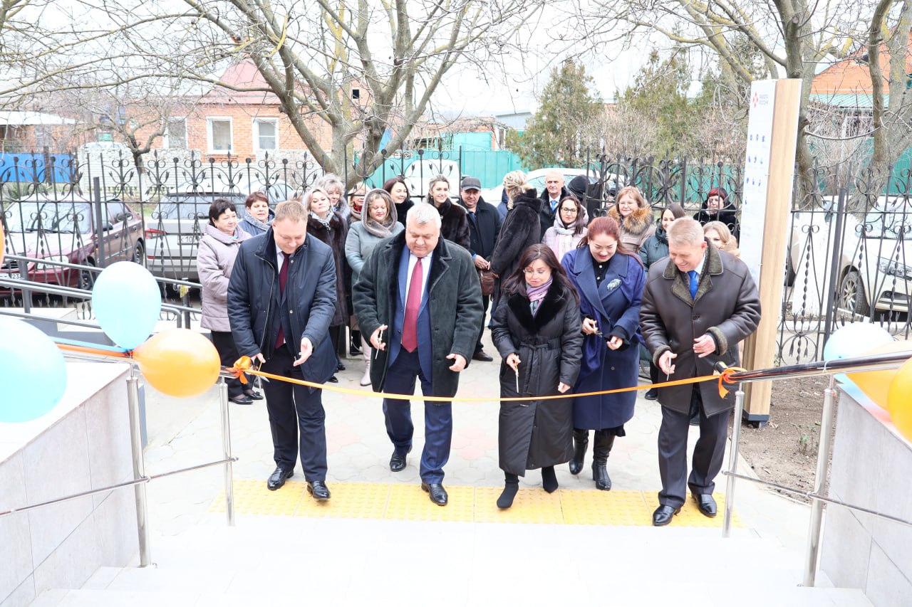 Руководитель района Сергей Дормидонтов месте с депутатом Законодательного Собрания Краснодарского края Владимиром Лыбаневым, исполняющим обязанности заместителя министра труда и социального развития Краснодарского края Натальей Худжиной, руководителем «Центра занятости населения Краснодарского края» Андрощук Инной и руководителем филиала Центра занятости населения Краснодарского края в Щербиновском районе Игорем Крикуновым открыли обновленный центр занятости.
