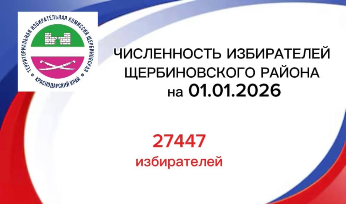 По данным ГАС «Выборы» на 1 января 2026 года на территории муниципального образования Щербиновский муниципальный район Краснодарского края зарегистрировано 27447 избирателей.