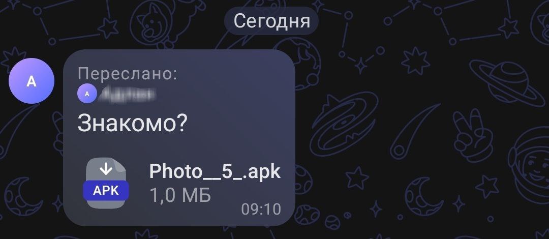 Сообщения с файлом apk открывать опасно!