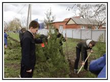 Сегодня было высажено 20 саженцев туи, которые подарил родной станице Котелевский Руслан.