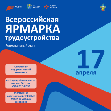 17 апреля по всей стране пройдёт региональный этап Всероссийской ярмарки трудоустройства.