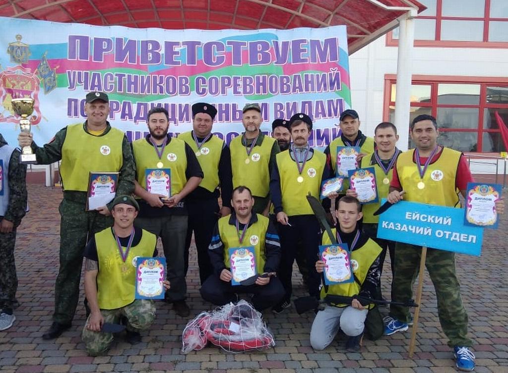 Казаки Ейского казачьего отдела почти во всех состязаниях занимали призовые места, что и повлияло на итог всех соревнований – Ейский казачий отдел занял первое место и увез с собой кубки, грамоты и призы!