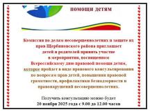 Комиссия по делам несовершеннолетних и защите их прав Щербиновского района приглашает детей и родителей принять участие в мероприятии, посвященном Всероссийскому дню правовой помощи детям