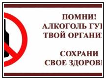 Напоминание о вреде употребления алкогольных напитков