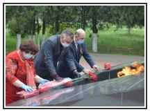С 10.00 до 16.00 часов-  возложение цветов к мемориалам жителями района с соблюдением дистанции и мер предосторожности.