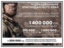 Выбирайте службу по контракту, присоединяйтесь к своим! Чтобы стать защитником Родины, обращайтесь в военные комиссариаты и в краевой пункт отбора: 8-861-258-35-40 или по номеру 117.