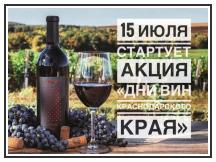 С целью продвижения вин краевых производителей и поддержания единой концепции всероссийской акции "Дни российских вин"  на территории  региона  в преддверии зимнего курортного сезона  с 15 декабря 2023 г.  по 15 февраля 2024 г. планируется проведение аналогичной акции " Дни вин Краснодарского края"