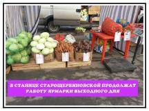 С 27 июня возобновляет свою работу ярмарка «выходного дня» в станице Старощербиновской. Время работы с 7.00 до 13.00.