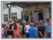 На  базе лагеря дневного пребывания, расположенного на территории СОШ № 1 им. Ляпидевского в ст. Старощербиновской состоялась встреча инспектора по пропаганде безопасности дорожного движения ОГИБДД Отдела МВД России по Щербиновскому району капитана полиции Батуринец И.А., с участием и поддержкой учителя ОБЖ Закоморного В.И. с учениками 5,6,7 классов.