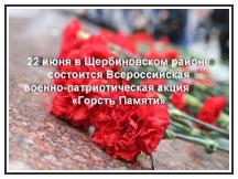22 июня в 04.00 часа состоится Всероссийская акция «Свеча памяти», сбор желающих принять участие в акции – у памятника Казаку на центральной площади станицы Старощербиновской на пересечении улиц Первомайской и Советов;