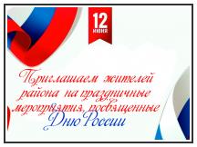 Уважаемые жители района! Приглашаем Вас 12 июня на праздничные мероприятия, посвященные Дню России