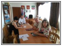 Глава района Сергей Цирульник провёл выездной приём граждан в Глафировском сельском поселении. Вместе с главой района разбирались в вопросах жителей села заместители главы, главный врач Центральной районной больницы Иван Качура, представители отделения Пенсионного Фонда, главный инженер филиала № 2 АО "Газпром газораспределение Краснодар" Владимир Кононенко.