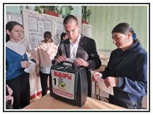 За ходом голосования наблюдают председатель территориальной избирательной комиссии Щербиновская Юлия Галкина, начальник отдела по делам молодежи Галина Григорьева, председатели участковых избирательных комиссий района.