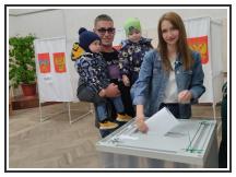 На выборы всей семьёй!  На избирательных участках  активно голосуют семейные пары - жители района. К выборам они относятся по особенному, считая, что день голосования - это настоящий праздник!  Желаем им  также дружно приходить вместе на избирательные участки  ещё много лет.