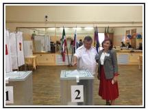 На выборы всей семьёй!  На избирательных участках  активно голосуют семейные пары - жители района. К выборам они относятся по особенному, считая, что день голосования - это настоящий праздник!  Желаем им  также дружно приходить вместе на избирательные участки  ещё много лет.