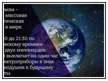 В целях привлечения внимания к проблемам охраны окружающей среды и рационального природопользования в России Министерством природных ресурсов и экологии Российской Федерации совместно с WWF России ежегодно проводится экологическая акция «Час Земли».