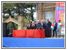 Возле праздничной трибуны – места для самых почётных гостей праздника, ветеранов войны и труда. В почётном президиуме – глава района Сергей Юрьевич Цирульник, председатель Совета муниципального образования Щербиновский район М.Н.Кряжов.