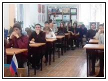 12  декабря вниманию старшеклассников СОШ № 1 был предложен час правовых знаний «Закон, по которому мы живем». Цель: формирование у учащихся  сущности, значения Конституции Российской Федерации. Задача: повышение правовой культуры. Участники  встречи   обсуждали основные положения Конституции, права и обязанности граждан, детей.