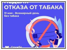 С 27 мая по 02 июня 2024 года - Неделя отказа от табака (в честь Всемирного дня без табака 31 мая)