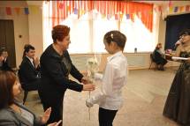 Ведущая праздника Фридрих И.В. теплые слова адресовала приглашенным мамам, представителям педагогической общественности: Душенко Е.Н. учителю школы № 5 (маме троих детей, младшей из которых нет еще и года); Котельниковой Н.Л. директору школы № 7 и ее маме Колосовой Т.Н., их педагогический стаж на двоих составляет 58 лет;