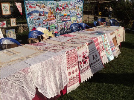 Народный мастер декоративно-прикладного искусства Новикова Любовь Алексеевна поводила экскурс по работам для гостей подворья, поведала про историю вышивки на Кубани, обучала технике исполнения вышивки всех желающих, рассказывала историю каждой работы. Вместе с Любовь Алексеевной приехали члены коллектива декоративно-прикладного творчества «Мережка» со своими, не менее прекрасными и уникальными работами: Монько Анна Михайловна, Анненко Валентина Яковлевна, Могилат Татьяна Николаевна и народный мастер ДПИ Власова Валентина Григорьевна. На этом фестивале присутствовала и жительница станицы Новощербиновской Новохацкая Евгения Николаевна, которая уже много лет занимается рукоделием.