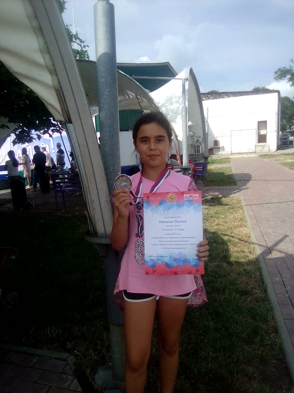 С 1 по 14 июля 2020 года обучающаяся Детско - юношеской спортивной школы станицы Старощербиновской Иваненко Полина отдохнула в смене образовательно – оздоровительного про-екта «Олимпийская Академия» физкультурно – спортивной направленности на базе Всероссий-ского детского центра «Смена» посёлка Сукко. Захватывающие игры, квесты, праздни-ки, фестивали, спортивные и творческие меро-приятия запомнились участникам смены. Так-же было реализовано большое количество но-вых, ранее никем не проводимых мероприятий, что сохранило интригу смены до самого финала. Полина принимала участие во всех ла-герных мероприятиях, стала призёром соревно-ваний по спортивному ориентированию, а так же получила свидетельство о дополнительном образовании «Образовательно – оздоровительного проекта «Олимпийская Академия» в объё-ме 91 час.