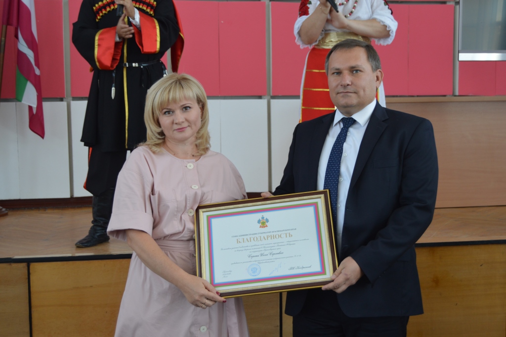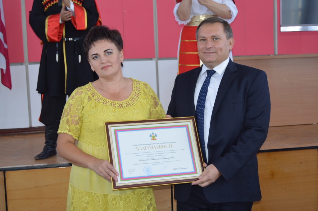 Сегодня в администрации района состоялось торжественное мероприятие, приуроченное ко Дню образования Краснодарского края. Мероприятие посетили почётные гости: руководитель департамента по обеспечению деятельности мировых судей Краснодарского края Олег Буцкий, глава района Сергей Цирульник,председатель Совета муниципального образования Щербиновский район Михаил Кряжов. В преддверии праздника, Олег Игоревич вручил Благодарности и Почетные грамоты главы администрации (губернатора) Краснодарского края активистам района. Мы гордимся нашей богатой землей, ежедневным трудом приумножая наследие наших предков! Мы являемся наследниками богатой кубанской земли, ее истории, культуры, но самое главное богатство для нашего края всегда были и будут люди – смелые, трудолюбивые, волевые. "Благодаря общим усилиям наша родная Кубань с каждым годом процветает, всё больше развивается экономика и социальная сфера, растут темпы жилищного строительства, улучшается дорожная сеть, строятся новые социальные объекты, ведется большая работа по благоустройству. В последние годы и наш с вами Щербиновский район укрепил свои позиции, изменил внешний облик. И это целиком и полностью наша общая заслуга!",- отметил глава района Сергей Цирульник.