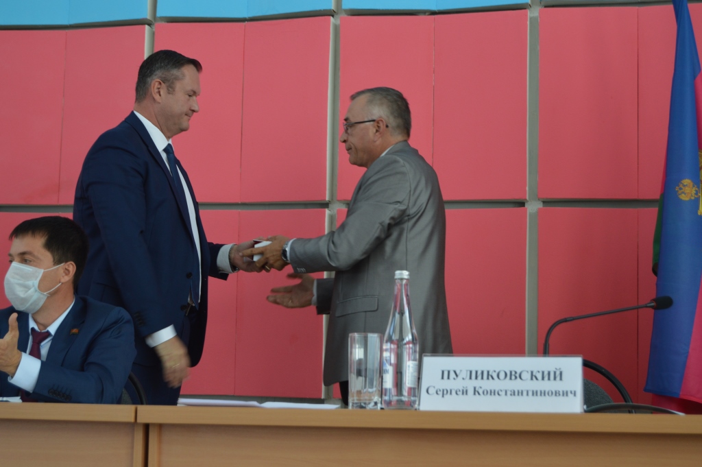 Сегодня в администрации района состоялось первая сессия Совета муниципального образования Щербиновский район четвертого созыва. . На заседании присутствовал вице-губернатор Сергей Пуликовский. В повестку дня были включены вопросы о досрочном прекращении полномочий главы муниципального образования Щербиновский район С.Ю. Цирульника и о назначении конкурса по отбору кандидатур на должность главы муниципального образования Щербиновский район. Депутаты Совета поддержали решение главы. От имени губернатора Краснодарского края Сергей Константинович поблагодарил Сергея Цирульника за проделанную работу.