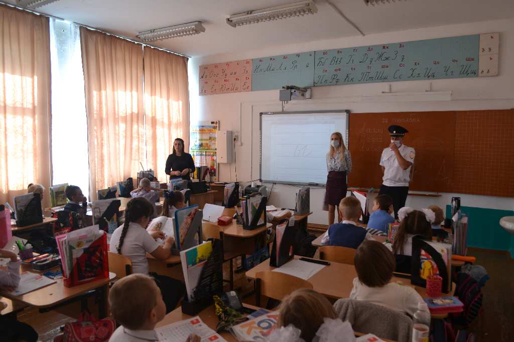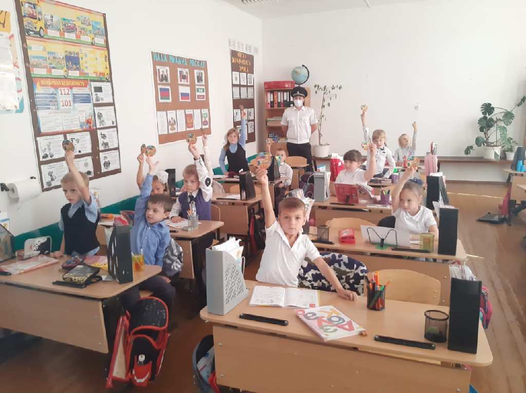 Сотрудники отдела ГИБДД Отдела МВД России по Щербиновскму району с учащимися МБОУ СОШ №5 им. И.П. Рыбина провели акцию "Пешеходный переход - мой лучший друг!". В начале встречи госавтоинспекторы провели с ребятами беседу о соблюдении правил дорожного движения, о важности использования световозвращающих элементов в темное время суток, рассказали как правильно вести себя на проезжей части и объяснили правила езды на велосипеде, роликах, самокатах. Особое внимание акцентировалось на том, что использование наушников с музыкой и мобильного телефона недопустимо при переходе проезжей части дороги. В целях закрепления полученных знаний школьники вместе с инспектором направили к пешеходному переходу, где провели практическое занятие по правилам перехода через проезжую часть. Инспектор показывал ребятам, какие знаки установлены на пешеходных переходах, рассказывал, что обозначают сигналы светофора, а также напомнили учащимся, как важно быть внимательным при переходе проезжей части. По окончанию мероприятия автоинспекторы вручили ребятам памятные медальки "Я знаю ПДД".