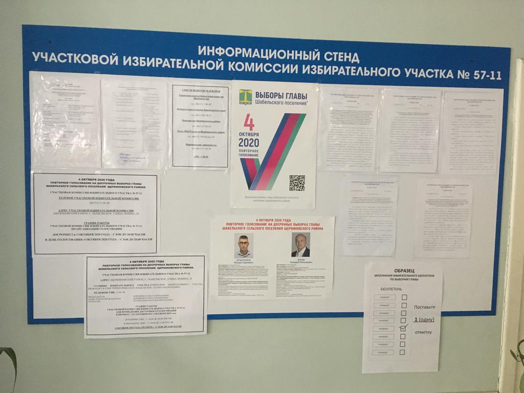 В период со 2 по 3 октября 2020 года избиратели имеют возможность проголосовать досрочно на повторных выборах главы Шабельского сельского поселения Щербиновского района, назначенных на 4 октября 2020 года.