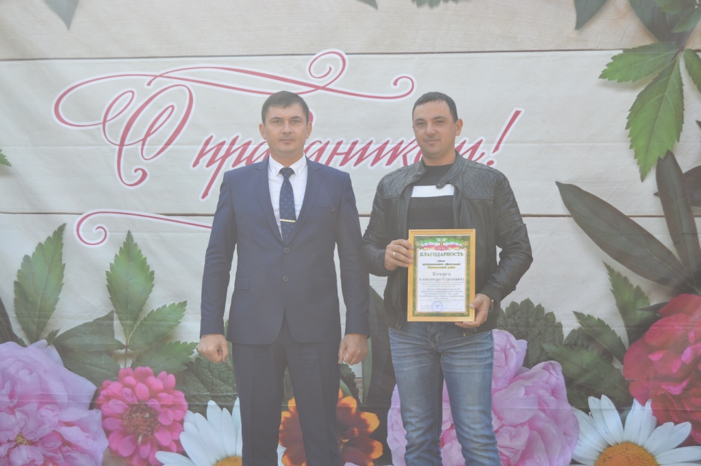 За многолетний добросовестный труд, высокий профессионализм, большой вклад в развитие сельского хозяйства района исполняющий полномочия главы района вручил труженикам района Благодарности главы муниципального образования Щербиновский район.