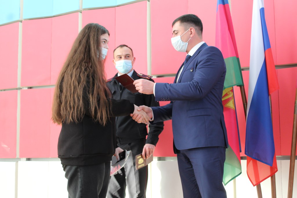 Сегодня 8 юных щербиновцев получили свой главный документ- паспорт гражданина Российской Федерации. Торжественную церемонию, посвящённую вручению паспортов провел исполняющий полномочия главы района Алексей Беликов и инспектор отделения по вопросам миграции ОМВД России по Щербиновскому району Алексей Вивчарь. Вручение паспорта – это большое и волнующее событие в жизни молодых людей. Сегодня вы стали более взрослыми, самостоятельными, получили второй важный документ в вашей жизни после свидетельства о рождении, и можете более осознанно оценить, что вы – граждане огромной, великой страны с многовековой историей, которую именно вам предстоит продолжить»- в своём приветственном слове отметил Алексей Анатольевич.