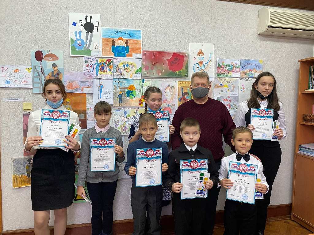 - творческий проект в номинации «Помни, работник, везде и всегда: главное – это охрана труда» в возрастной категории – от 7 до 9 лет, наименование работы «Помни, работник, везде и всегда: главное – это охрана труда», автор и победитель муниципального этапа конкурса Жилич Арсений Андреевич, ученик муниципального бюджетного общеобразовательного учреждения средней общеобразовательной школы № 12 имени Героя Советского Союза Ивана Григорьевича Остапенко муниципального образования Щербиновский район село Глафировка. Руководитель Центра занятости вручил юным художникам, грамоты и памятные подарки за активное участие, мастерство, качество исполнения и соответствие тематике Конкурса.
