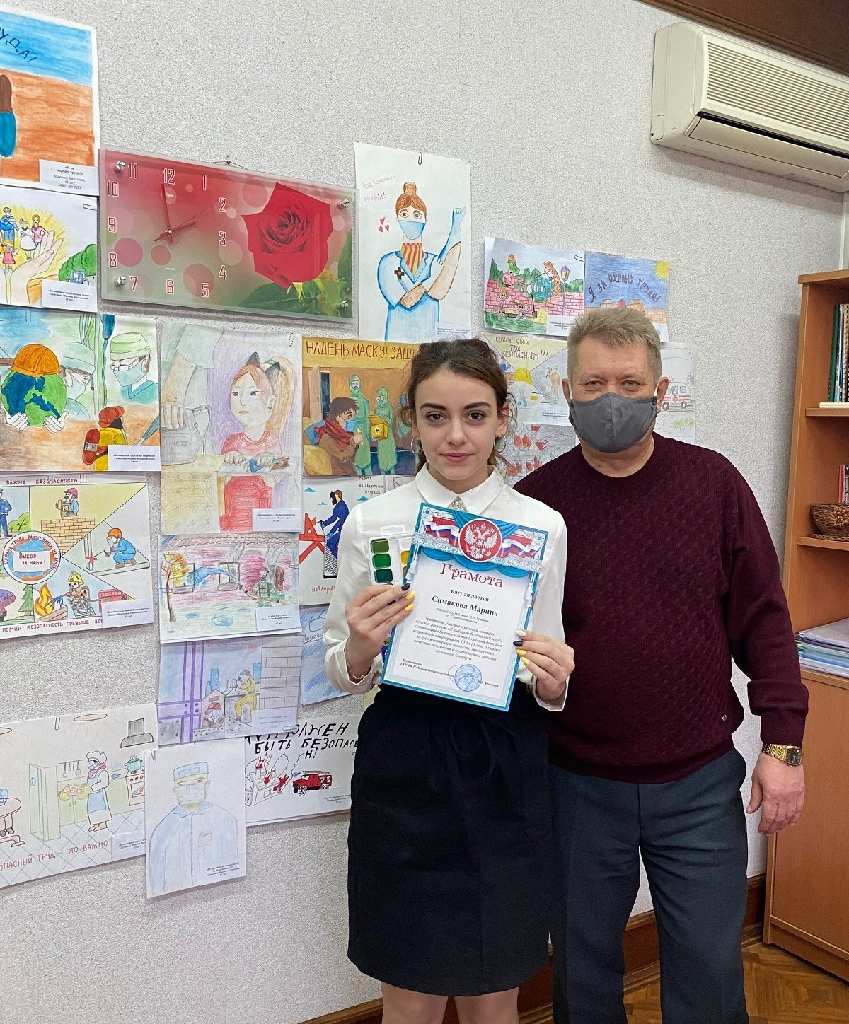 - рисунок в номинации «Безопасный труд глазами детей» в возрастной категории – от 10 до 15 лет, наименование работы «Безопасный труд – залог здоровья», автор и победитель муниципального этапа конкурса Симакова Марина Владимировна, ученица муниципального бюджетного общеобразовательного учреждения средней общеобразовательной школы № 2 имени полного кавалера орденов Славы Павла Ильича Арчакова муниципального образования Щербиновский район станица Старощербиновская;