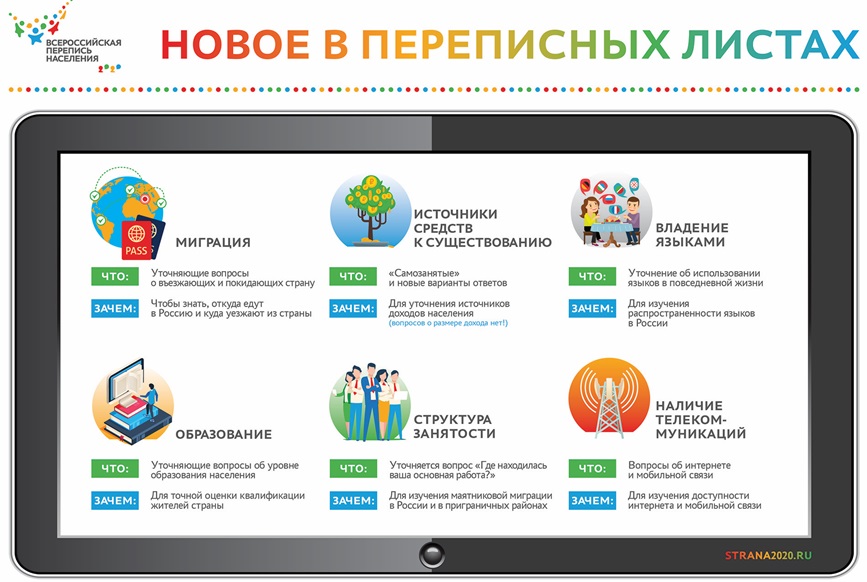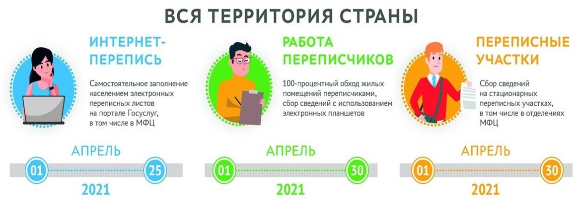 Всероссийская перепись населения пройдет с 1 по 30 апреля 2021 года. К уже традиционному способу участия в переписи — личному общению с переписчиком — добавятся удаленные, через интернет. На вопросы анкеты можно будет ответить на портале «Госуслуги», либо через приложение «Госуслуги» в смартфоне, либо на компьютере в любом центре государственных и муниципальных услуг «Мои документы». После ответа на вопросы вам будет выслан уникальный код — достаточно будет показать его переписчику, чтобы он сделал соответствующую отметку. Ответить на вопросы переписного листа можно будет также на переписных участках, расположенных в том числе в МФЦ. Переписчики будут иметь планшетные компьютеры, а для переписи отдельных лиц — бланки переписных листов.