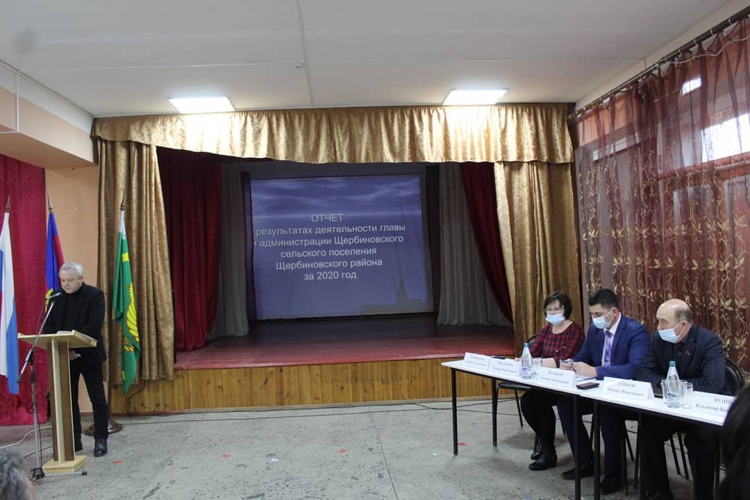 Глава района Алексей Беликов принял участие в открытой сессии Совета Щербиновского сельского поселения. На сессии глава поселения Дмитрий Ченокалов отчитался о своей деятельности и деятельности администрации Щербиновского сельского поселения за 2020 год. В 2020 году общий объем доходной части бюджета поселения составил 15 миллионов 514 тысяч рублей. Из федерального, краевого и районного бюджетов поступило более 6 миллионов рублей. В 2020 году в поселении реализовывалось 12 муниципальных программ. Хотелось бы отметить, что благодаря победам в краевых конкурсах, в сельское поселение удалось привлечь денежные средства для решения проблемных вопросов . Так, в 2020 году по итогам 2019 года Щербиновское поселение заняло 3 место в краевом смотре-конкурсе на звание лучшего поселения края. Средства, предоставленные из краевого бюджета в форме дотаций израсходованы на ремонт и замену сетей водоснабжения на территории поселения, замену пожарных гидрантов, ремонт памятного знака советским воинам, погибшим в годы Великой Отечественной войны. Кроме этого, в отчётном году сельское поселение стало победителем краевого конкурса по отбору проектов местных инициатив. Почти 600 тысяч рублей, предоставленных из краевого бюджета, израсходованы на благоустройство территории перед сельским Домом культуры. Одними из приоритетных направлений в работе администрации поселения в 2019 году стали благоустройство территории поселения, работы в жилищно - коммунальной сфере. В отчётном году отремонтировано дорожное покрытие по ул.Ленина в пос. Щербиновский, отремонтировано уличное освещение в поселках Щербиновский, Северный, Восточный. Алексей Анатольевич в своем выступлении отметил,что администрация района в этом году планируем заниматься газификацией посёлков Северный и Прилиманский, а также ремонтом дороги на посёлок Северный и водопроводом Также, в школе поселка Щербиновский имеется проблема с пищеблоком. "В этом году планируем по мере возможности сделать ремонт в пищеблоке, уже готова проектно-сметная документация. Кроме этого,необходимо проводить активную работу по привлечению инвесторов в сельское поселение, искать дополнительные источники доходов. Такую задачу я ставлю перед главой сельского поселения",- резюмировал глава муниципалитета.