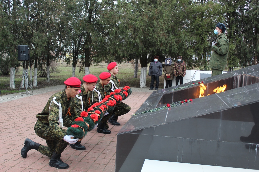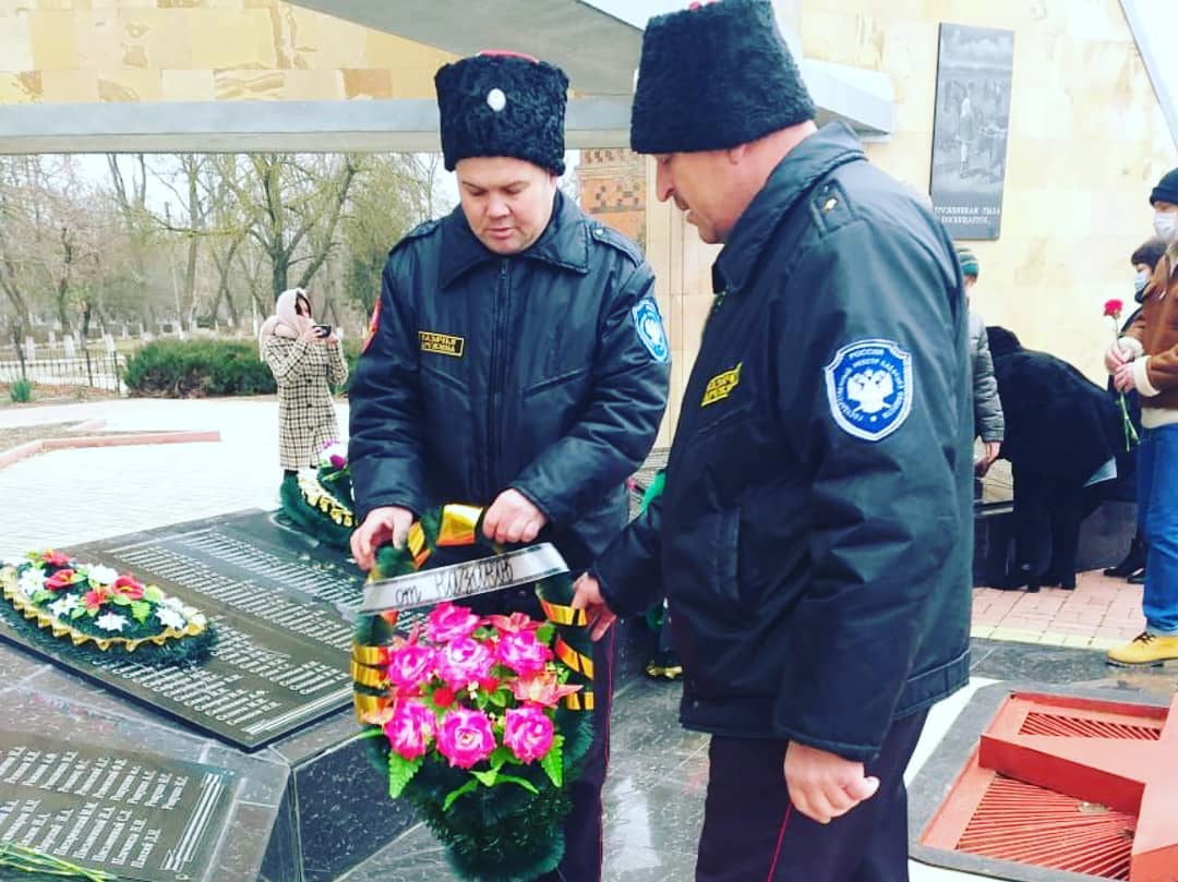 В станице Старощербиновской возложили цветы и венки у мемориального комплекса в честь земляков, погибших в годы гражданской и Великой Отечественной войн.