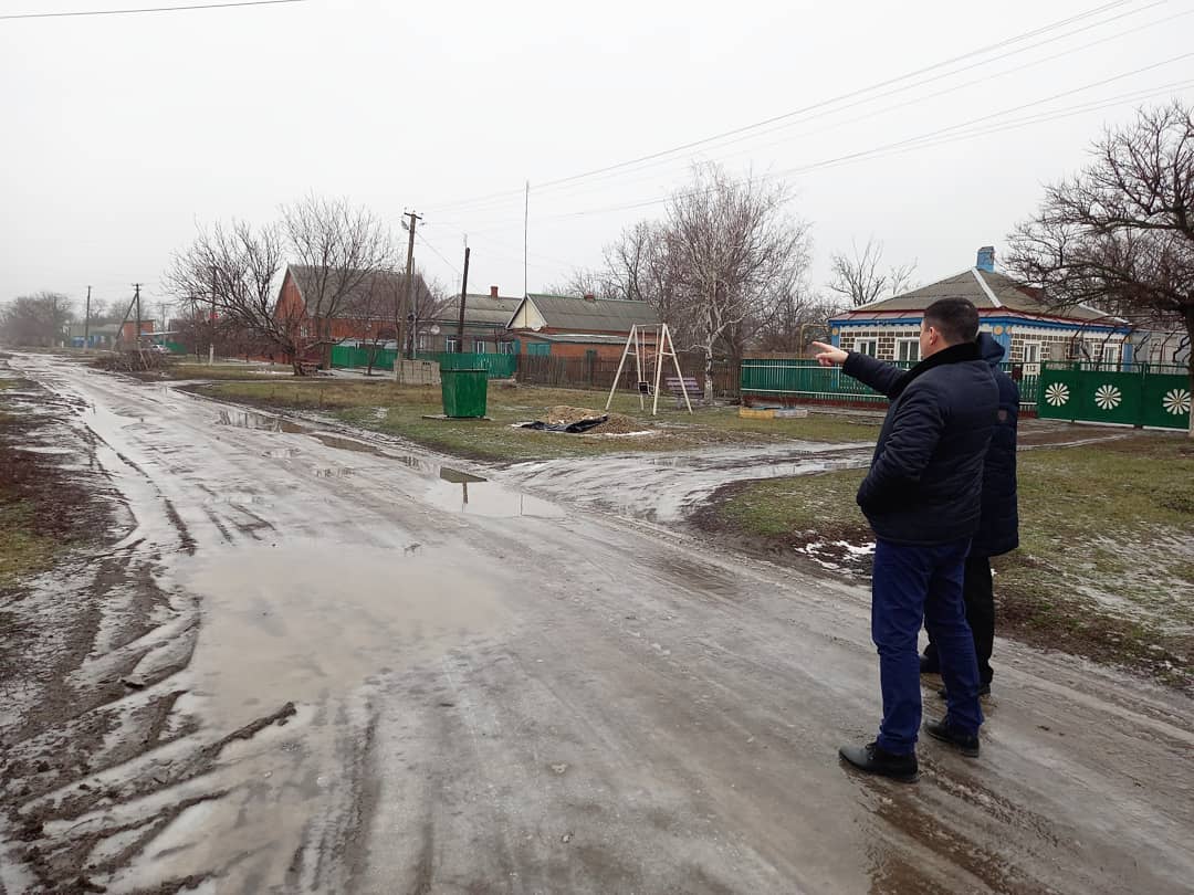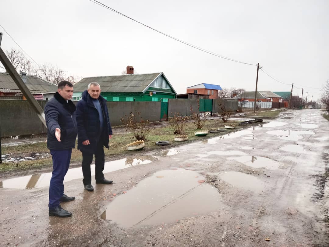Алексей Беликов вместе с главой Старощербиновского сельского поселения объехали проблемные участки дорог и тротуаров
